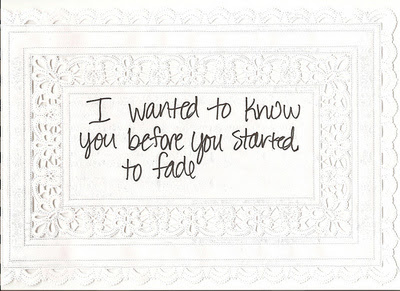 Sometimes when I look at you, I feel like I’m gazing at a distant star,” I said. “It’s dazzling, but the light is from tens of thousands of years ago. Maybe the star doesn’t even exist any more. Yet sometimes that light seems more real to me than anything."